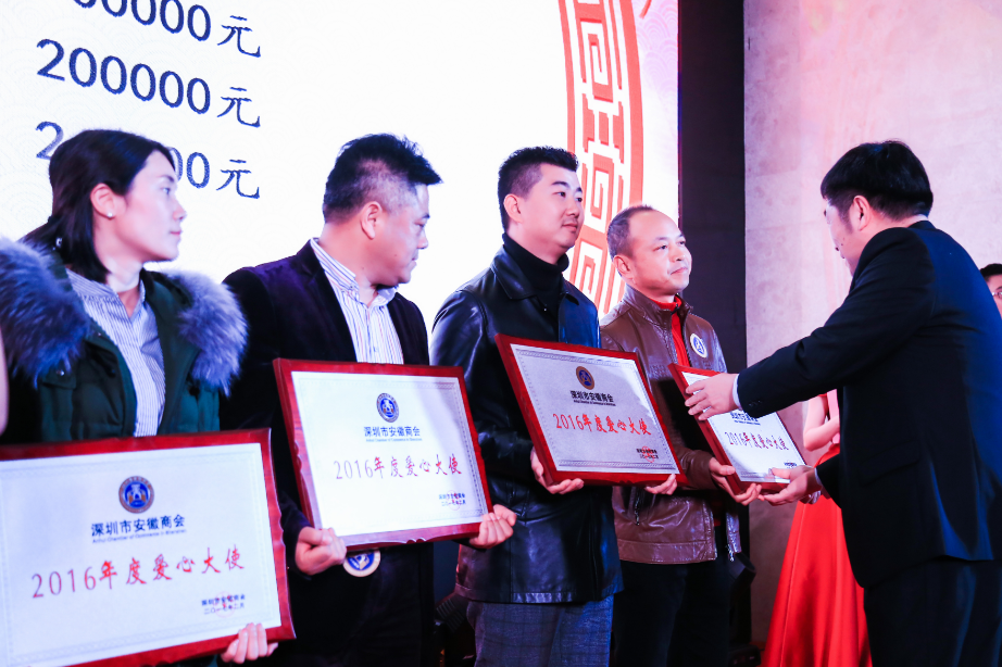 2017年2月26号下午,公司总经理许翼参加了深圳市安徽商会第一届三次会员迎春大会暨2017深圳徽商春茗联谊会,并获得2016年度爱心大使奖。在深的安徽16市、县商代表及行业精英、社会名流,近300位乡友欢聚一堂,共叙乡情、共谋发展。