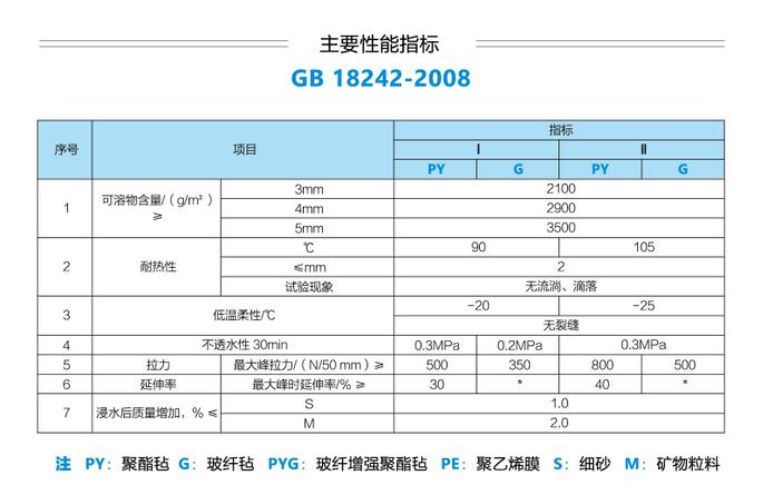 1、按胎基不同可分为:聚酚毡(PY)、玻纤毡(G)