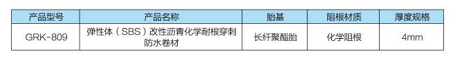 GRK--809弹性体改性沥青化学耐根穿刺防水卷材是以长纤聚酯纤维毡为卷材胎基。以添加进口化学阻根剂的SBS改性沥青为涂盖材料,两面覆以聚乙烯膜为隔离材料制成的改性沥青卷材。