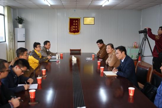 金川集团安徽生产基地副总经理冉成向客人介绍生产情况
