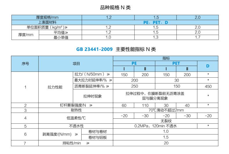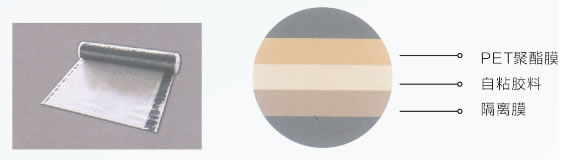 PET聚酯复合自粘防水卷材是我公司推出的一种经济、实用、环保型新材料。采用聚酯复合膜(镀铝、铝塑复合)为表面材料,覆以橡胶改性沥青胶料及隔离材料组成,用水泥浆粘贴。可在潮湿基面上施工,对基面要求低,具有粘结强度高、粘结效果好,不窜水等特点。