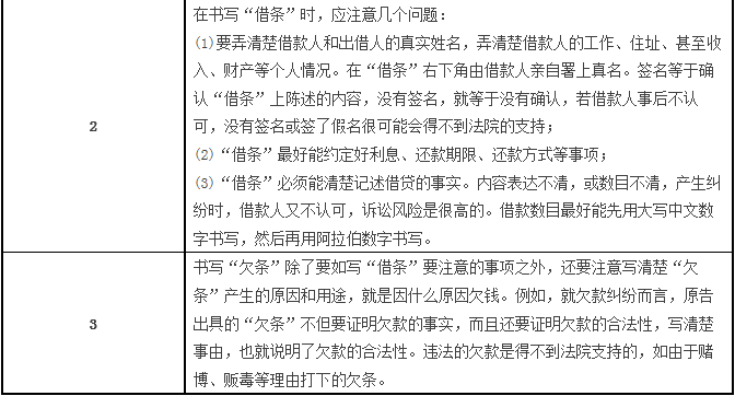 4、当借条持有人凭借条向法院起诉后,由于通过借条本身较易于识辨和认定当事人之间存在的借款事实,借条持有人一般只需向法官简单地陈述借款的事实经过即可,对方要抗辩或抵赖一般都很困难。但是,当欠条持有人凭欠条向法院起诉后,欠条持有人必须向法官陈述欠条形成的事实,如果对方对此事实进行否认、抗辩,欠条持有人必须进一步举证证明存在欠条形成事实。
