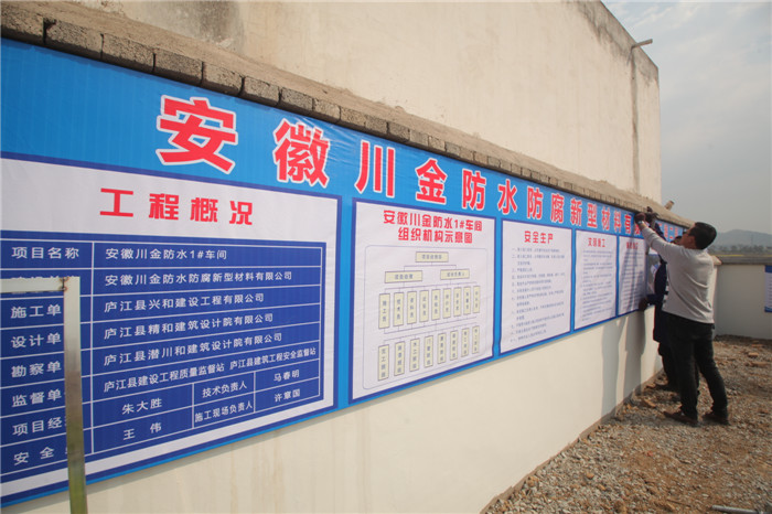 坐落在安徽省合肥市庐江县沙溪社区的工业园区的川金防水防腐新型材料有限公司是金川防水集团旗下在合肥开设的新型材料生产基地,其一期工程正在如火如荼的进行中。