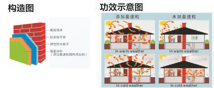 使用盈速粒这种极微小的并经过极配的中空陶瓷颗粒,混合于涂料里涂在建筑物内外表面后形成了极薄的中空腔体层,构成了有效的热屏障。也就是说当辐射热进入