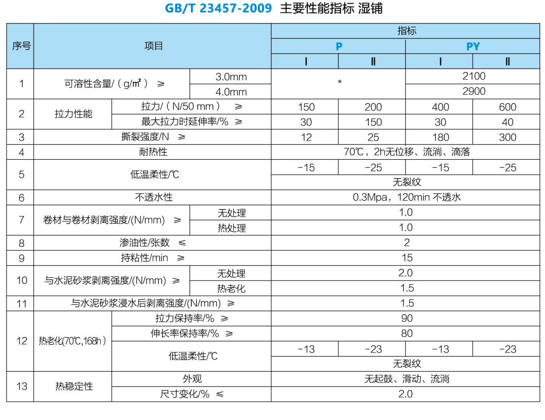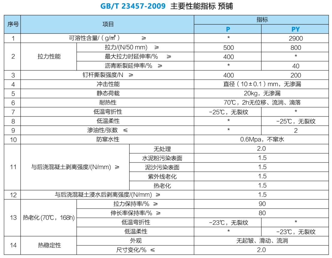 预铺/湿铺自粘聚合物改性沥青防水卷材是以合成橡胶和优质重交沥青为主料,配以活性助剂,以水泥浆为粘结层,构成复合防水系统,将防水层永久牢固地粘附于结构上。当使用预铺法施工时,与结构的现浇混疑土直接粘结,实现与建筑结构的完全满粘贴,形成完整密封的防水系统,同时采用聚酯胎为胎体,增加抗拉强度,解决了普通材料拉力不够而开裂导致渗水的缺点,是防水工程的首选材料。