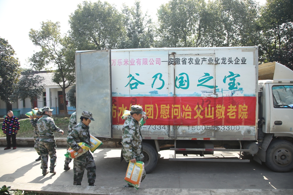 活动三:金川防水(集团)全体员工徒步23公里去安徽省庐江县冶父山镇敬老院慰问孤寡老人。