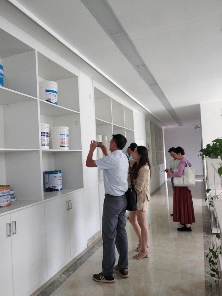 考察团一行认真了解我公司办公环境,防水防腐材料“固若”品牌及防水构造、做法。