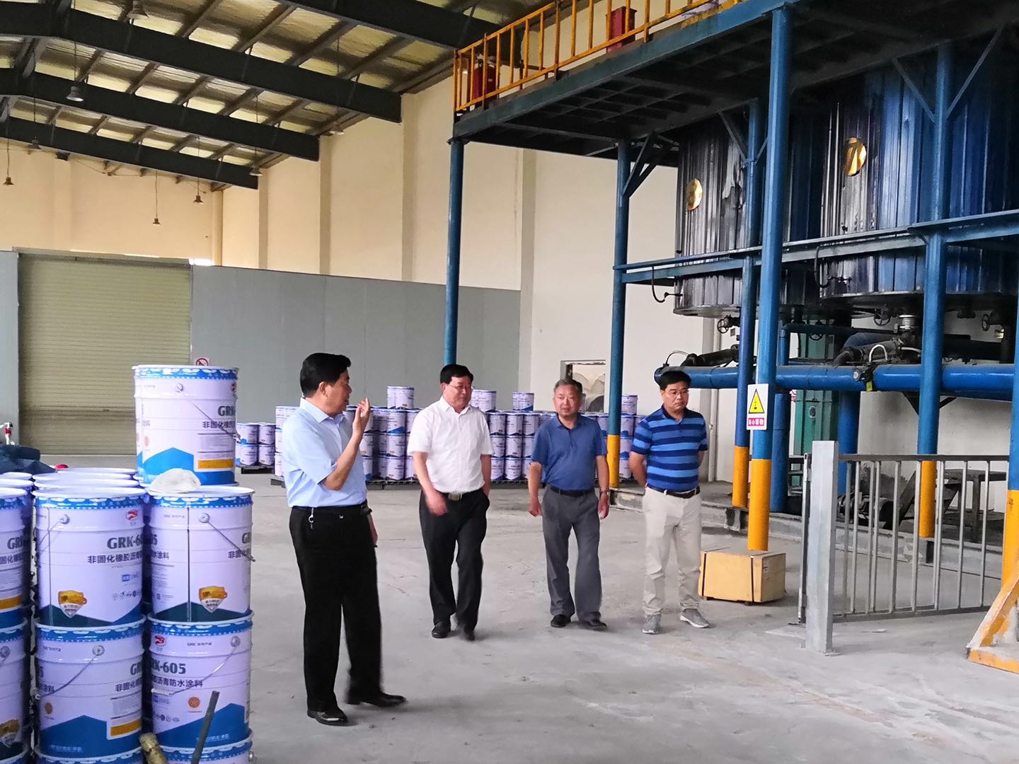 2019年6月14日下午,安徽省庐江县重点工程建设管理局主任薛斌率领领导班子一行三人莅临我公司安徽生产基地参观指导工作。金川防水(集团)董事长、安徽生产基地总经理许小金先生对各位领导的到来表示欢迎并进行了热情的接待。