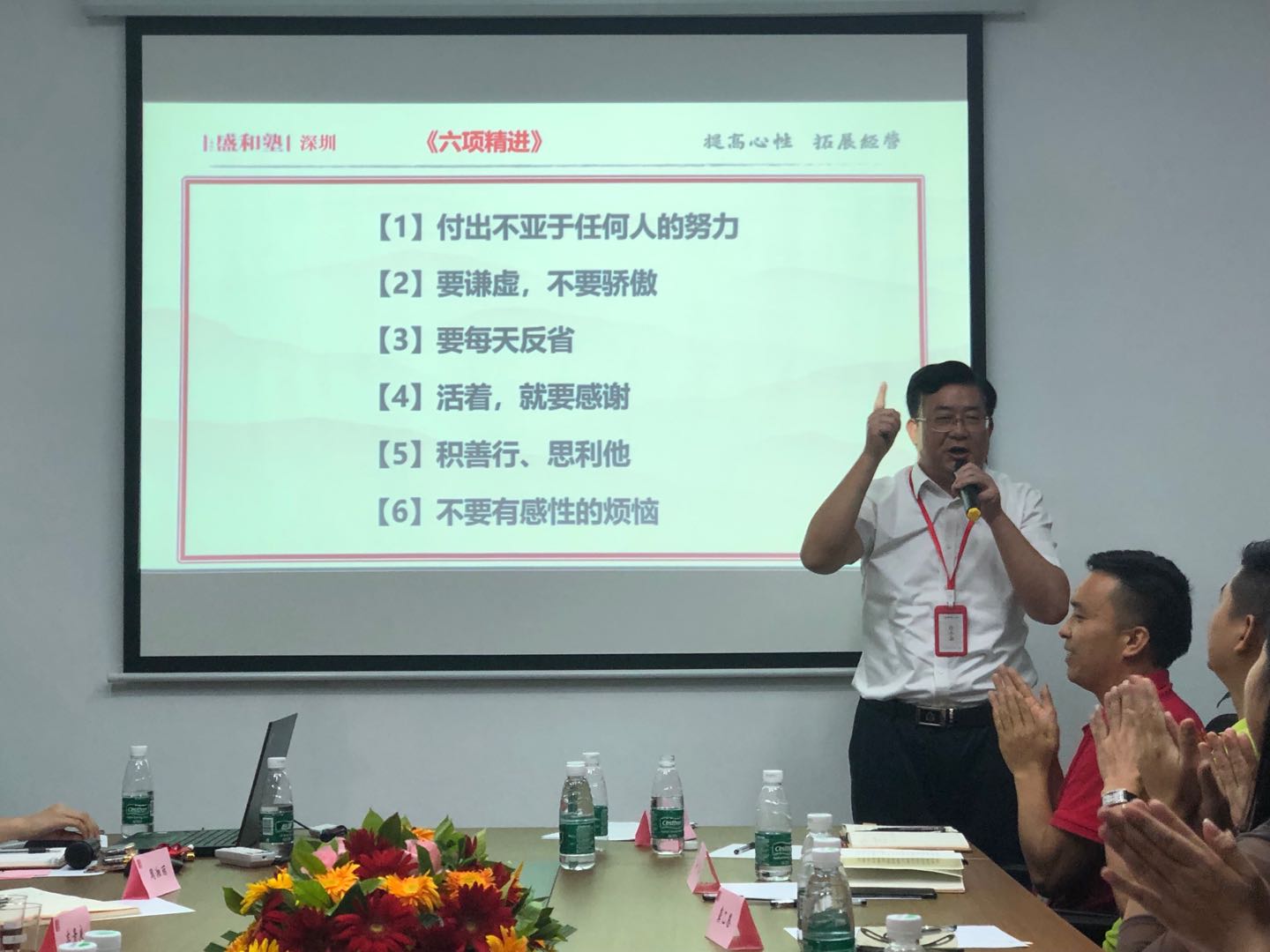 2019年8月16日,深圳盛和塾龙光分塾在深圳市金川防水防腐装饰工程有限公司召开了第10次学习分享会。在深圳盛和塾理事长郭文英女士及各位灵魂之友的大爱加持下,学习会在《歌唱祖国》欢乐的氛围中开启。
