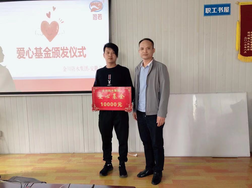 爱心点燃希望——金川防水(集团)安徽工厂举行“爱心基金”颁发仪式