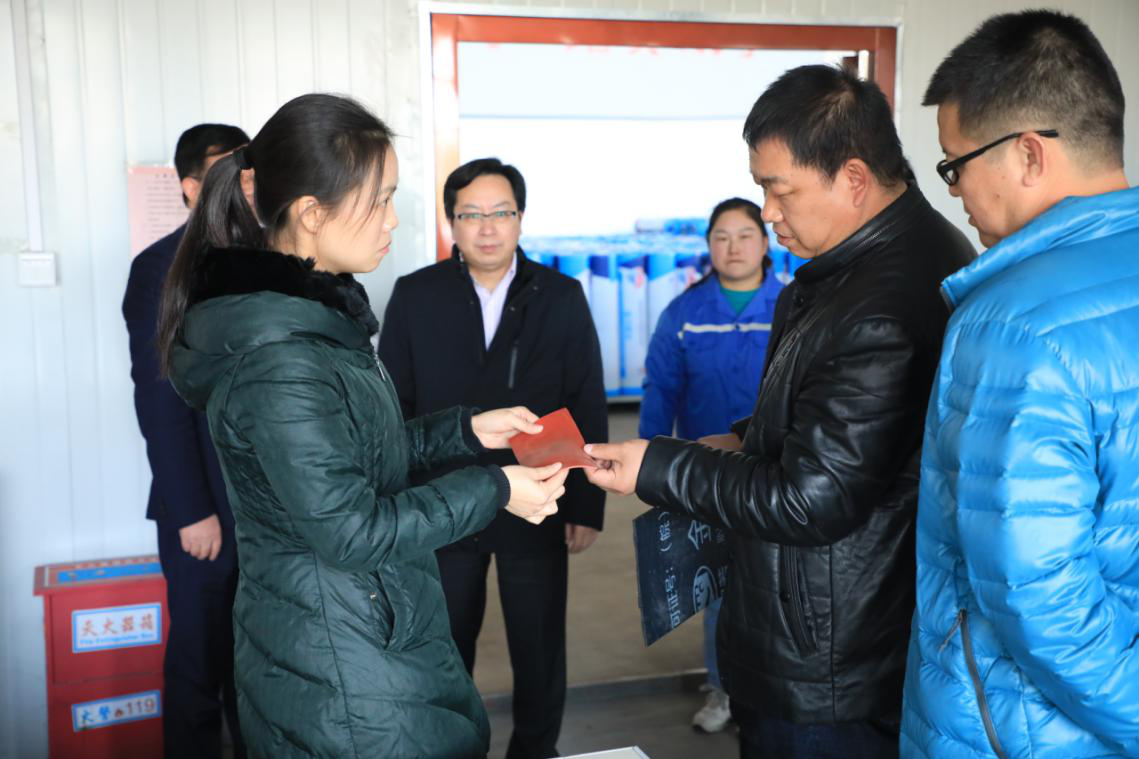 2019年12月7日下午两点,铜陵市政府副秘书长、铜陵市建投公司张总、朱总一行在庐江县人大朱副主任、泥河镇盛书记等领导的陪同下到我司安徽生产基地考察,公司董事长许小金和总公司副总经理马丽给予了热情的招待。考察团深入办公区域、化验室、生产车间以及环保设备运行区域,详细的查看了解我司的人员管理、安全生产、产品质量及工艺操作流程等情况。