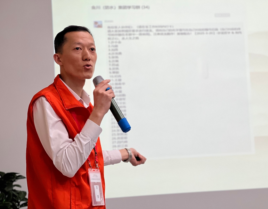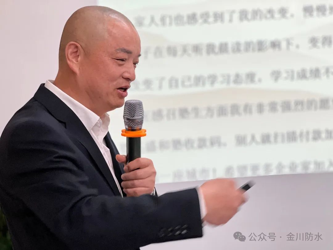 学习会在激昂的《歌唱祖国》歌声与经典诵读中开场。东道主深圳金川防水(集团)刘青学长代表介绍,金川防水是行业头部企业,集研发、设计、生产、销售、施工于一体,提供一站式服务。公司有150余名正式员工,其中30名中高级技术人才,10名研发人员,技术总顾问是享受国务院津贴的防水专家金树清。历经二十一年发展,金川防水(集团)在国内拥有防水防腐保温工程专业承包一级资质、装修装饰工程专业承包二级资质,印尼公司拥有工业与住宅建筑施工总承包资质。并在安徽建立了5万平方米生产基地,引入国际先进生产线与工艺,卷材年产能达1千万平方米,涂料达5万吨。公司通过多项权威体系认证,实验室设备国内领先。