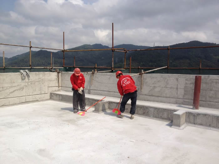 【金川防水集团】怀德广场C、D塔楼屋面防水工程进入清理施工环节