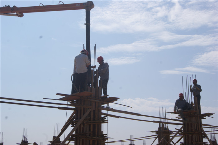 7月30日,金川防水集团安徽川金一期工程进入整体混凝土浇筑阶段,现场项目负责人许章和亲自督促着工程安全有序的进行。
