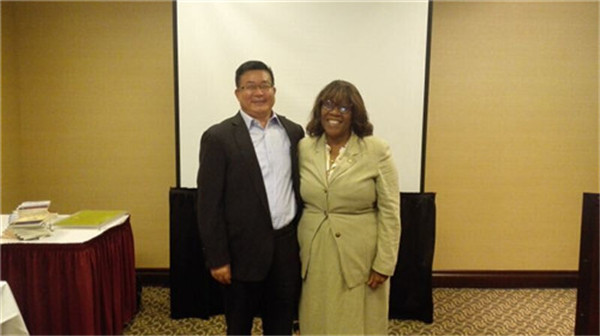 图为许小金同志(左一)与托莱多市长的合影